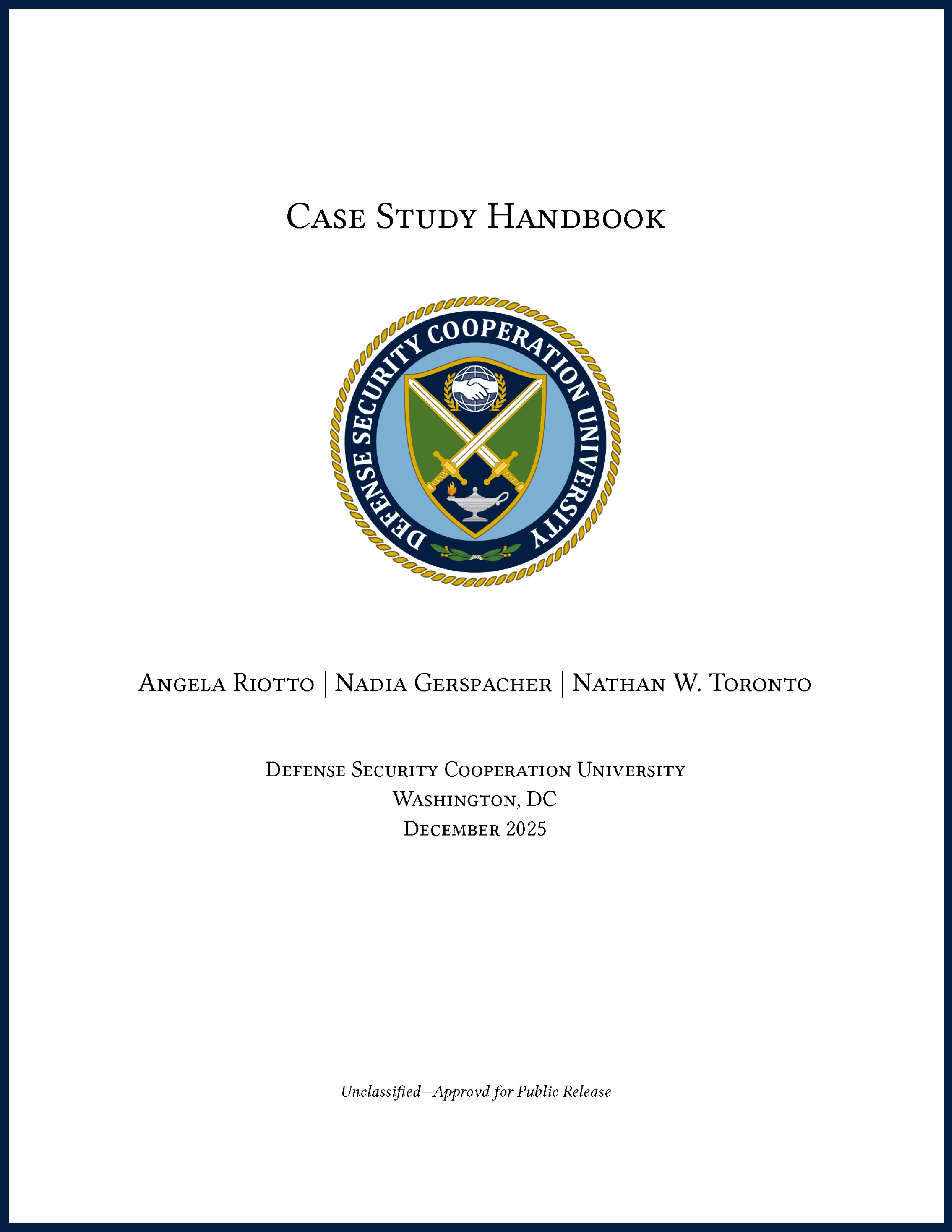 The DSCU Case Study Handbook is a guide designed to equip the security cooperation workforce and researchers with the framework and tools needed to effectively develop, write, and analyze case studies in and out of the classroom. The handbook supports the advancement of the security cooperation profession by providing clear, proven approaches to developing case studies that illuminate best practices, investigate security cooperation outcomes, and drive evidence-based decision-making.