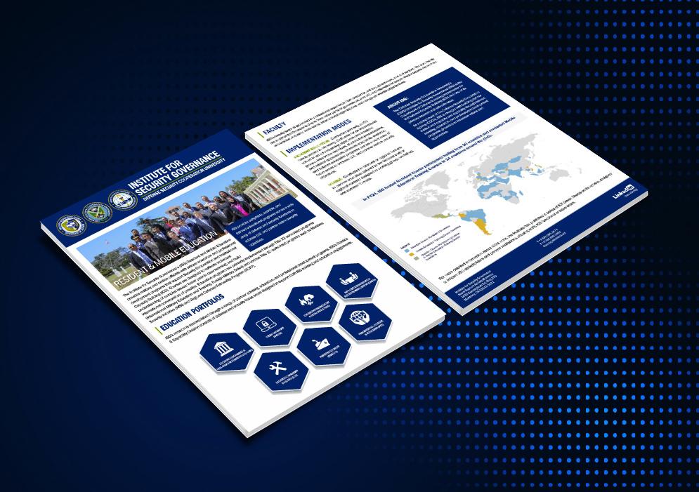 This Course Catalog outlines the Institute’s varied course curricula, organized in the following education portfolios: Security Governance & Civil-Military Relations; Cyber Capability; Emergency Management & Resilience; International Defense Acquisition Resource Management, Logistics Capability Building; Maritime Security; and Peacekeeping, Conflict & Terrorism.